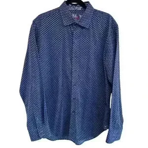 ROBERT GRAHAM Mens Dress Shirt BLUE Plaid Classic Fit Size L