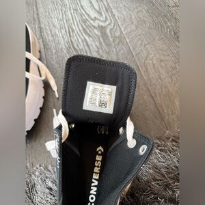 Stylish black and white high-top sneakers. Perfect for casual wear.
