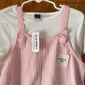 Cute seersucker pink and white jumper with white tee. Size 5T. NWT.