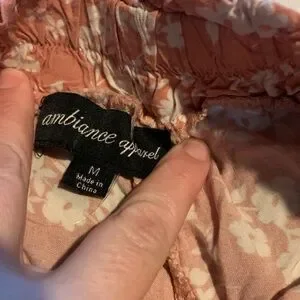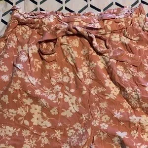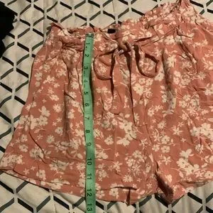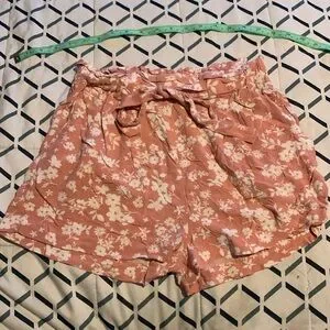 Pink floral stretchy waist with tie belt floral medium shorts with pockets