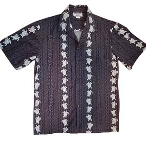 A relaxed fun Hawaiian shirt featuring a unique turtle print.