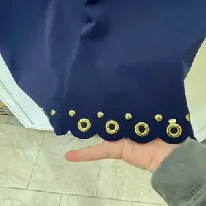 Super cute navy dress with gold ring detail around waist and scalloped hem. This dress is NWT. Length 35.5”