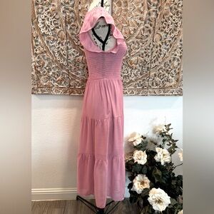 Lee Pink, Super Soft, Lightweight, Smocked Top, Tiered Skirt, Maxi Dress- size M
