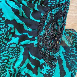 Great Pre-owned Condition Bella Blue Plus Dress Women's Green Sz 22 Faux Wrap Embellished Abstract Print