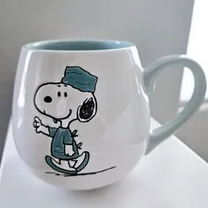 Enjoy your favorite beverage with this charming Snoopy coffee mug. Featuring snoopy in scrubs, with lettering "thank you," it's perfect for any Peanuts fan or gifted to anyone in the health and medical field