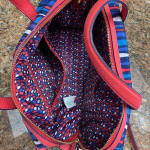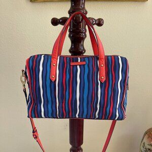 Vera Bradley Light Weight Fabric Handbag or Shoulder Purse, Orange Blue Stripes