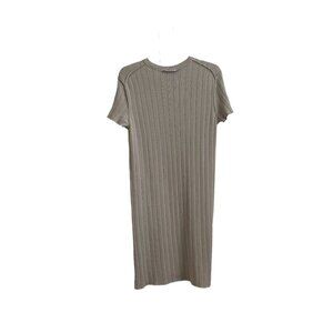 MM Lafleur Beige Short Sleeve Pullover Dress Textured Knitted 100 Cotton Size M