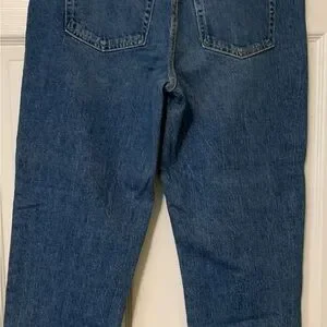 Classic 90's straight denim jeans in blue. Timeless style for any wardrobe.