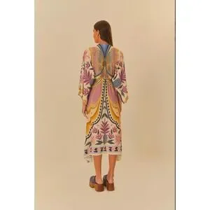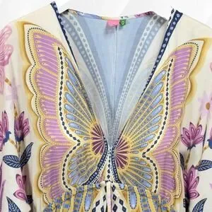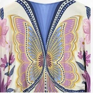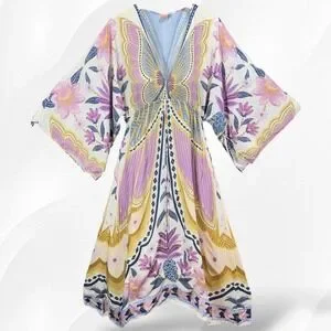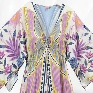 Farm Rio Butterfly Floral Print Kimono Sleeve Dress Bohemian Style
