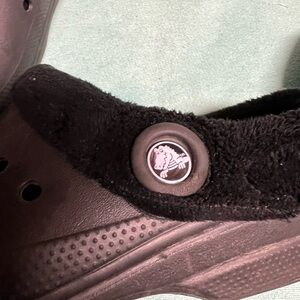 Comfortable black Crocs clogs with cozy fleece lining. Perfect for casual wear. Have removable soft lining for outdoor or garden wear, dog walking or work. Preowned women’s size 9.