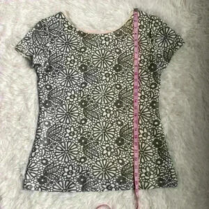 Banana Republic sequin short sleeve shirt. Black-and-white. Size medium. Unique. Excellent preowned condition. Nude lining. Floral design.