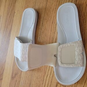 Step into comfort and style with these Michael Kors slide sandals. Featuring a chic cream color, these sandals are perfect for casual outings. Enjoy the blend of fashion and function with every step.