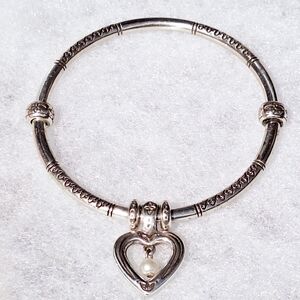 This elegant Brighton bracelet features a charming heart pendant, perfect for adding a touch of sophistication to any outfit. The intricate design and classic silver color make it a versatile accessory for any occasion.