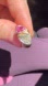 With a 7mm Old mine cut Diamond ( 1ct ) and a Trillion Cut Pink Topaz , and in some lights has blue undertones