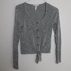 Caution to the wind Striped Top Front Ties XS/S
