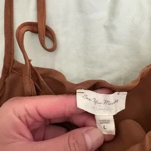Elegant brown slip dress with thin straps. Perfect for layering or wearing alone. Some piling on the fabric due to wear.
