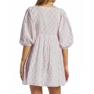 Introducing the Ambers Babydoll Dress by Billabong in a delightful Tulip hue, designed for effortless charm. This mini dress in China-made patterned cotton gauze features three-quarter puff sleeves and a flirtatious self-tie closure at the V-neck. With a garment length of 33.5 inches, this dress captures a breezy elegance perfect for any occasion. Hand wash and line dry for best results.