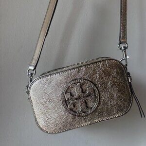 Adjustable, removable leather crossbody strap with 22.2" (56.5cm) drop