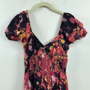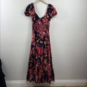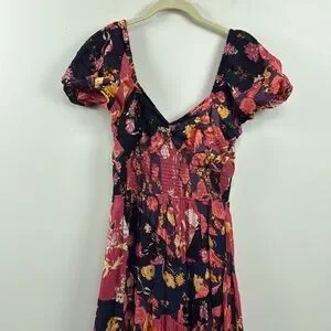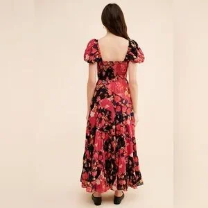 Embrace elegance with this stunning floral maxi dress. Featuring a vibrant mix of colors, this dress is perfect for any occasion. The puff sleeves add a touch of sophistication.