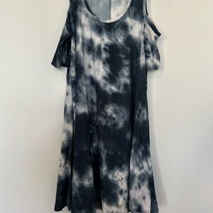 Stylish Blues and White Tie-Dye Cold Shoulder Midi Dress
