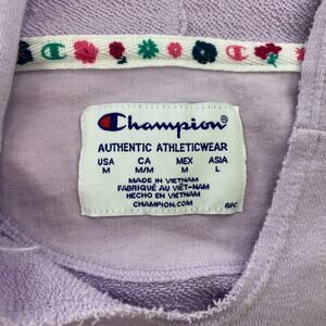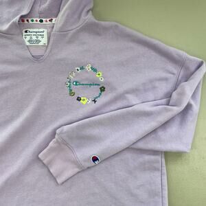 Champion Cropped Hoodie Sweatshirt Women Medium Pastel Purple Embroidered Floral