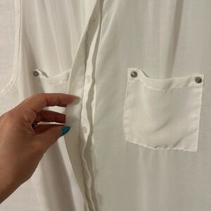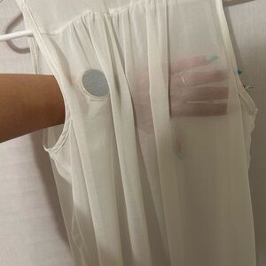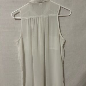 Elegant sleeveless sheer blouse in a classic white shade. Perfect for both casual and formal occasions.
