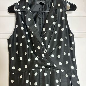 Jessica Howard super fun black dress w/ white polkadots vintage fit & flare 10P. This is one of my favorite dresses but it no longer fits. It’s got a very vintage feel. Tailored feel; nice lines. Smoke-free home. Super fun dress would look great with a thick black belt. Has a classic vintage 1950s 1960s vibe.