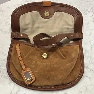 UGG Australia Brown Tan Leather Suede Crossbody Messenger Purse