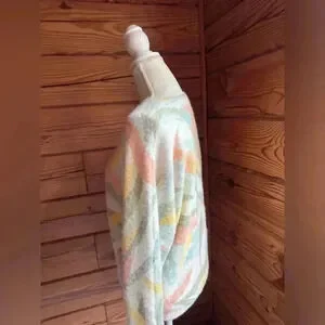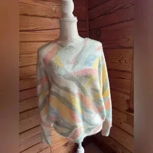 Rachel Zoe Fuzzy Crew Neck Green Pink 80s Retro Styled Sweater size small