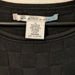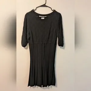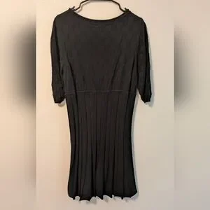 This elegant black knit dress offers a sophisticated look for any occasion. Its classic design and comfortable fit make it a versatile addition to your wardrobe.