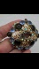 A large oval cut glass stone is surround by AB chaton's, surround by filigree hearts.