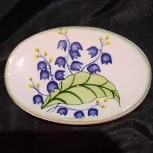 Elegant ceramic trinket dish with a charming floral design. Perfect place to place your jewelry while using the washroom.