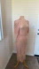 From a pet & smoke free home. This elegant dress in a soft pale peachy blush pink hue features a crew neckline and 3/4 sleeves, side body zipper, in fabric perfect for a spring summer event or garden wedding guest occasion. The dress showcases a form-fitting silhouette with a delicate all-over unique lace pattern, offering a timeless and sophisticated look. New without tag. Would pair well with a beautiful fascinator hat. :)