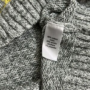 Stay cozy and stylish with this gray and yellow patterned sweater. Perfect for any casual outing.
