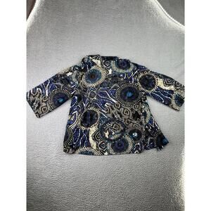 Chico's 3/4 Sleeve Open Front Cardigan Women’s Size 2/ US L Sheer Geometric