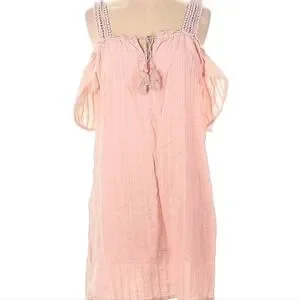 Aerie Off The Shoulder Mini Dress Beachy Cover Up Coastal Bohemian Feminine Pink