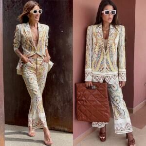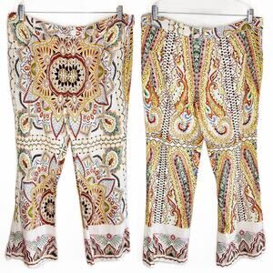 Zara Linen Blend Paisley Mandala Floral Print Wide Leg Ankle Flare Pants XXL