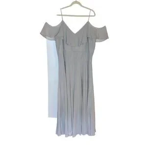 The Mila dress features draped sleeves that can be worn over or under the arms for a personalized look. Delicate spaghetti straps provide extra support for the bodice. The flounce neckline adds to the feminine silhouette with a circle skirt completing the romantic look. This dress is fully lined with a center back invisible zipper.