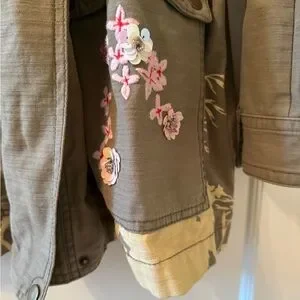 ANTHROPOLOGIE Maeve Floral embroidered moss green jacket Size XL EUC!