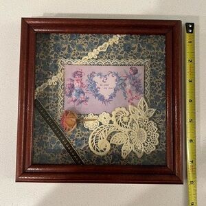 Vintage Victorian Shadow Box Lace Rose To Greet My Love Heart Cherubs Cupids