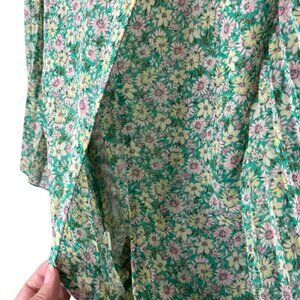 Haute Monde Women's V-Neck Floral Cut Out Tie Back Bohemian Boho Top in Size L. This gorgeous green top features a lightweight design perfect for spring. It has a wrap style front with a flattering v-neckline and playful bell sleeves. The floral pattern adds a fresh and feminine touch, while the open back with a stylish tie back detail makes it perfect for warm weather. Ideal for casual outings, festivals, or beach days, this boho-inspired top offers comfort and effortless style. Pair it with your favorite jeans, skirts, or shorts for an easy, breezy look. A must-have addition to any women's spring wardrobe.