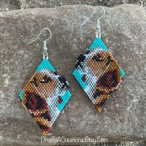 Here’s a pair of Beagle Beaded Earrings are lightweight and comfortable to wear all day. Made with high quality glass Delica Beads, beaded one bead at a time. Love and passion goes into making my jewelry. This process requires focus, patience and dedication. Each bead is 16th of an inch and can take hours to complete a project.