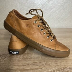 Sperry Striper II LTT Cognac Leather Low Top Sneakers Sahara Men 10 Oxford Shoes
