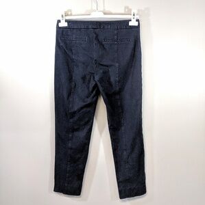 Figure flattering, light stretch, mid-rise capris, hook closure at waist, good pre-owned condition.