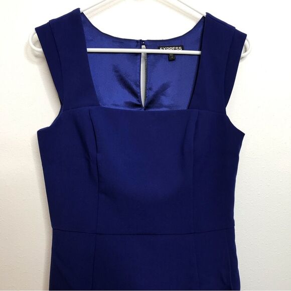 Express Womens Dress Royal Blue Sheath Square Neck Ruffle Size 4