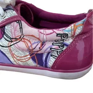 Gently used Coach Poppy Barrett sneakers. Purple patent leather at the heel and accents. Great tread with just a little wear at the heel. New laces. Very clean interior.