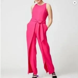 ❤️❤️ Nine West hot pink Flyaway Leg Belted Jumpsuit