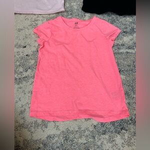 Girls solid short sleeve shirts. Top 2 were worn once and are size 6. Bottom pink one is size 6-8 and when taking pics I noticed a small mark on bottom front may come out? See pictures for fronts, backs and closeups. Smoke free home.