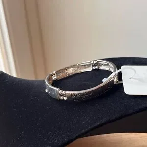 Silver stretchy bracelet with Bible verse.