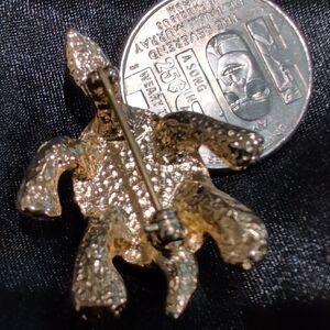 This elegant gold turtle brooch adds a touch of sophistication to any outfit. Its intricate design and shimmering gold finish make it a standout piece.